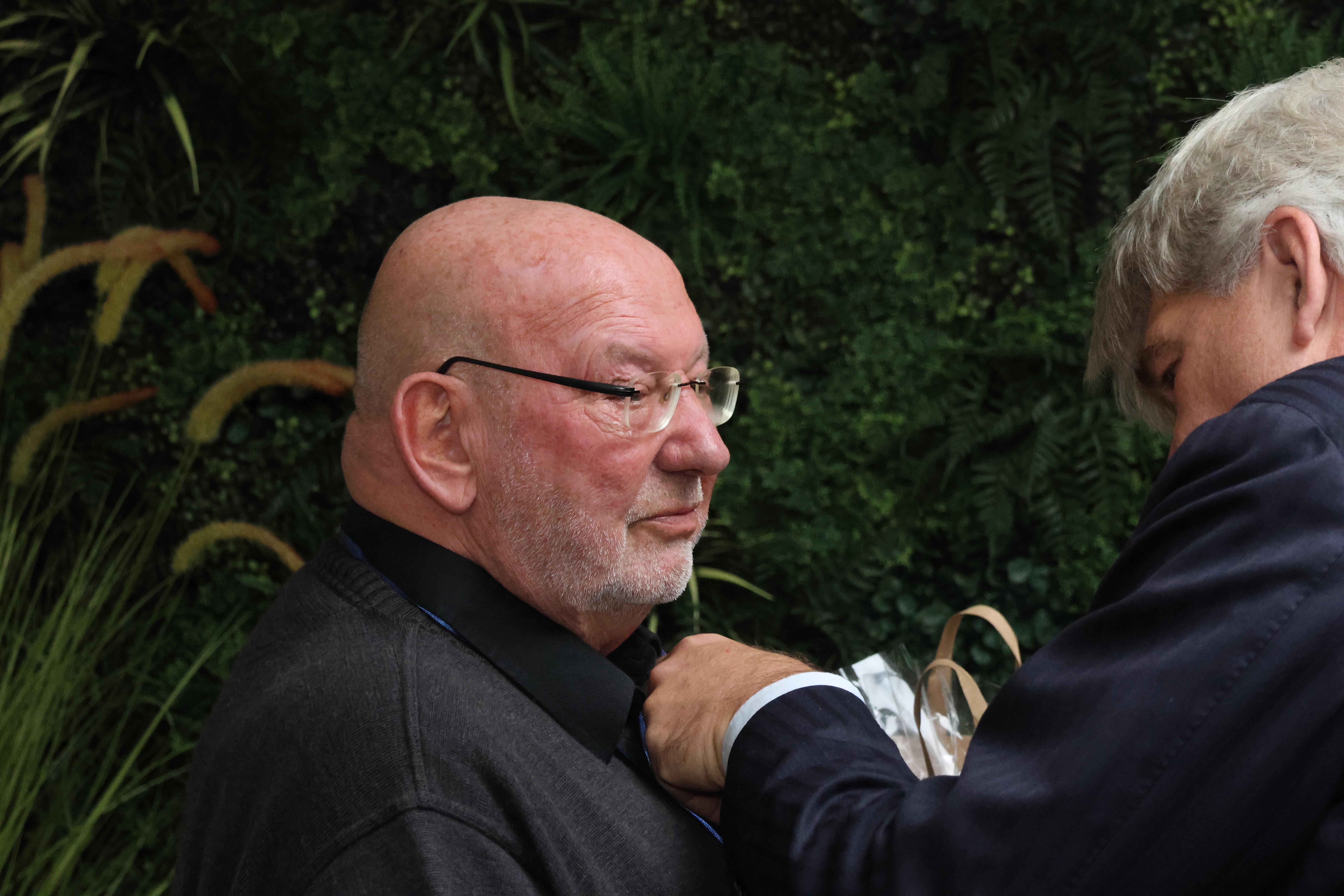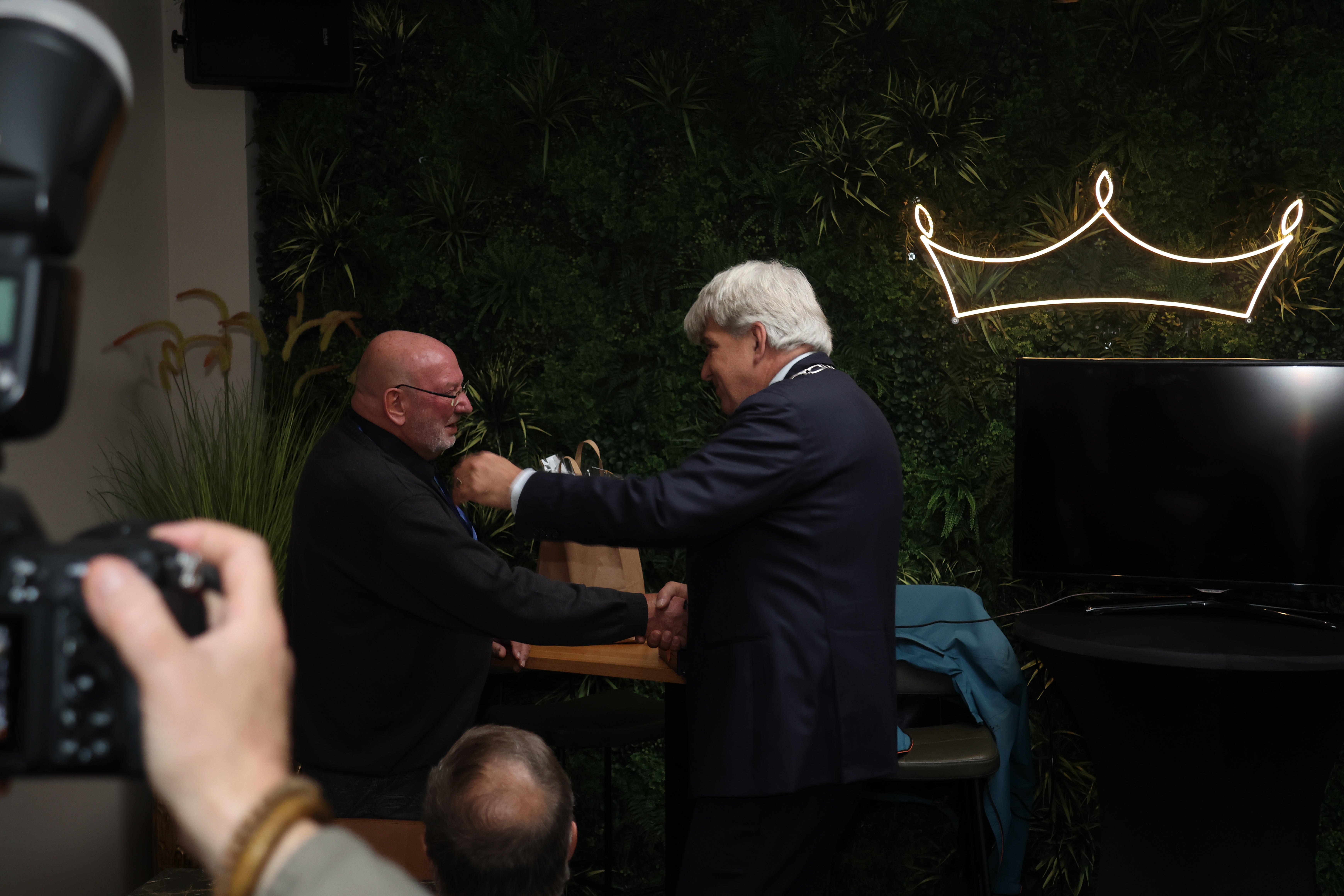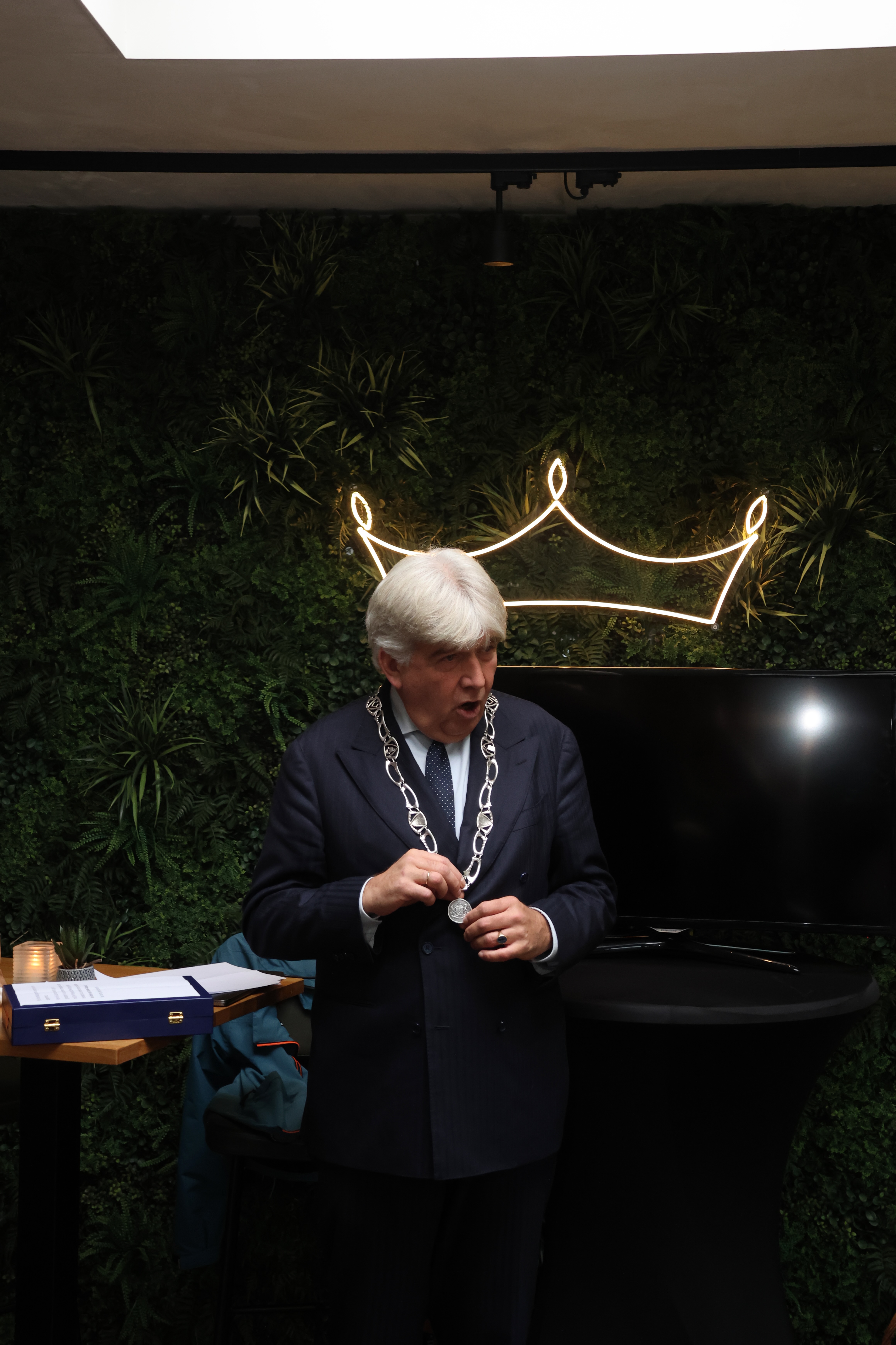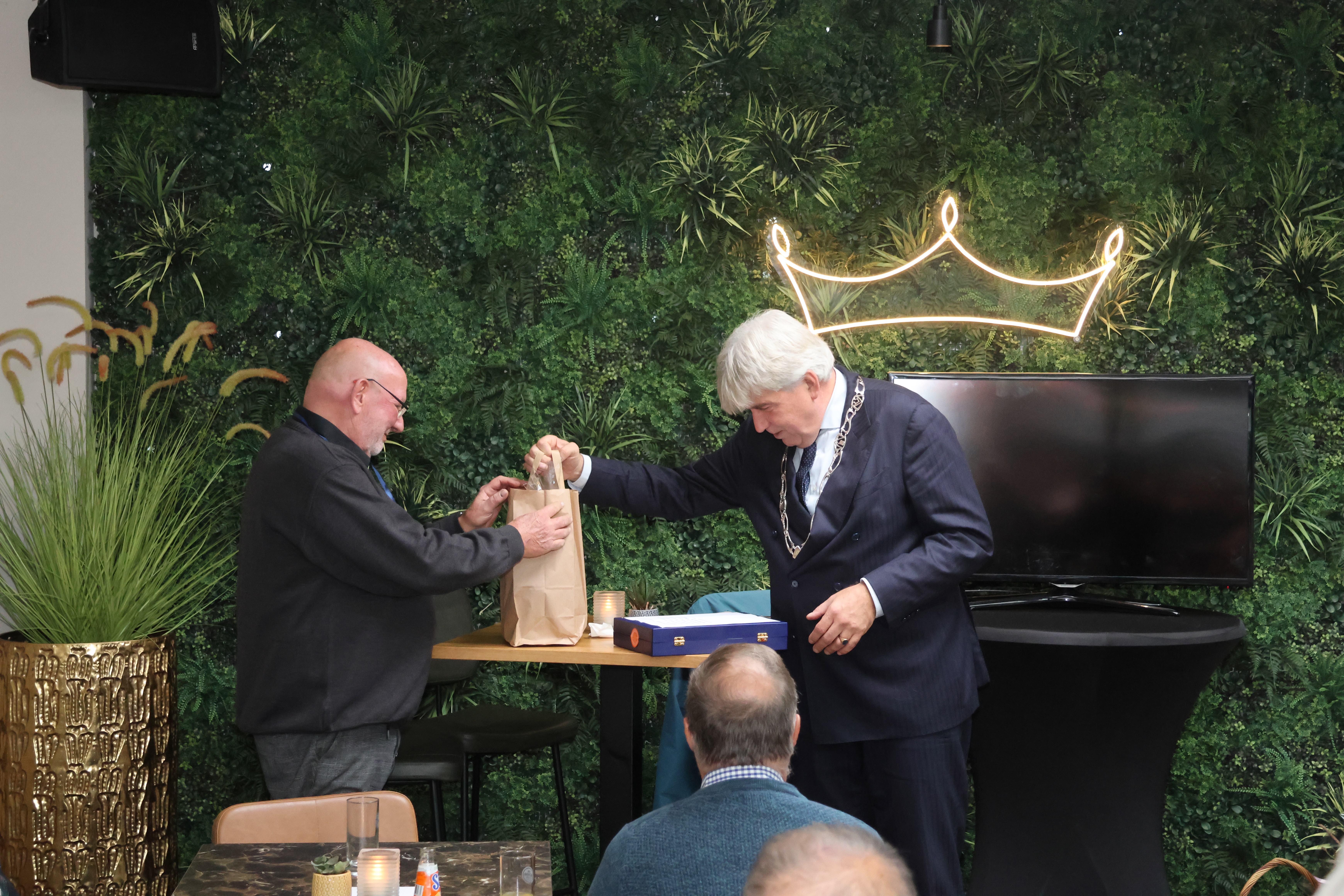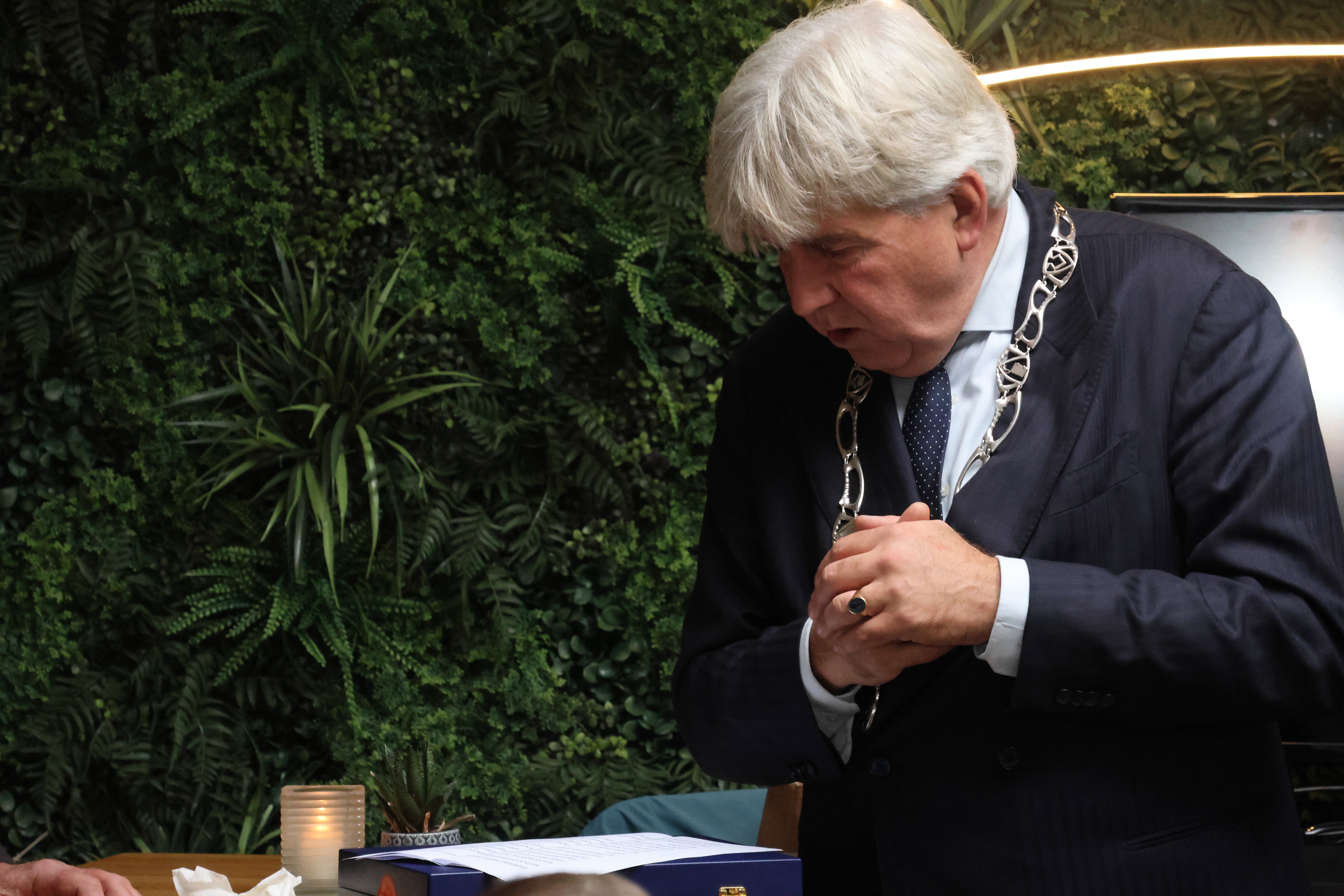 Na een korte toespraak van de burgemeester kreeg Jan de onderscheiding opgespeld.